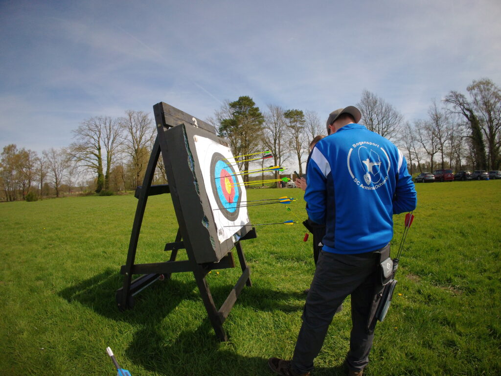 „An die Schießlinie – Pfeile frei!“ hieß es dann. Insgesamt wurden zwei Durchgänge à sechs Pfeile geschossen, nachdem zuvor drei Probepassen absolviert worden waren. In diesen hatten die Schützen die Möglichkeit, sich mit der Entfernung sowie den Gegebenheiten vor Ort vertraut zu machen.