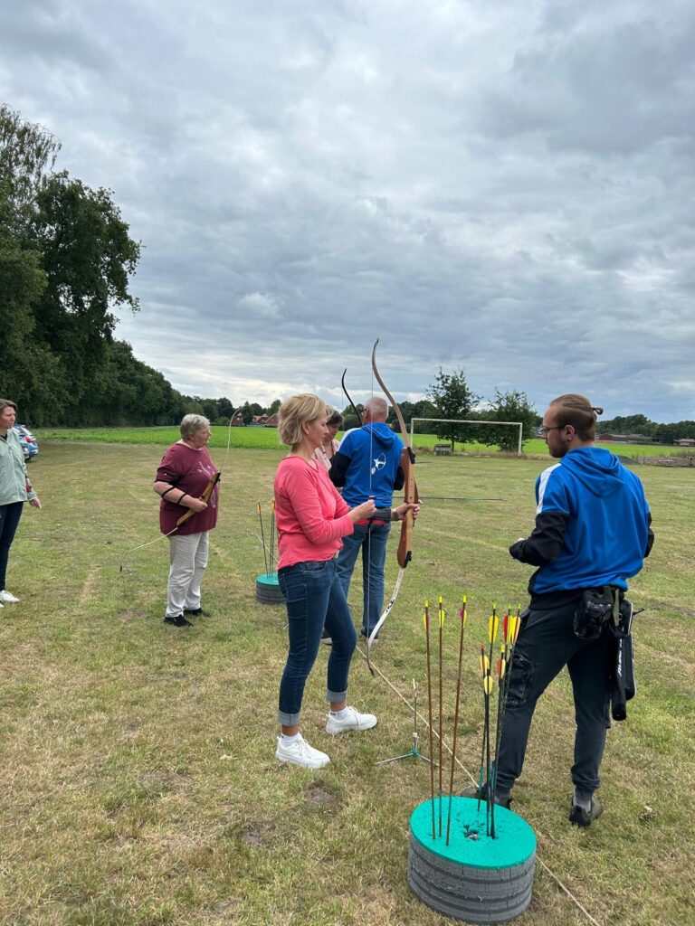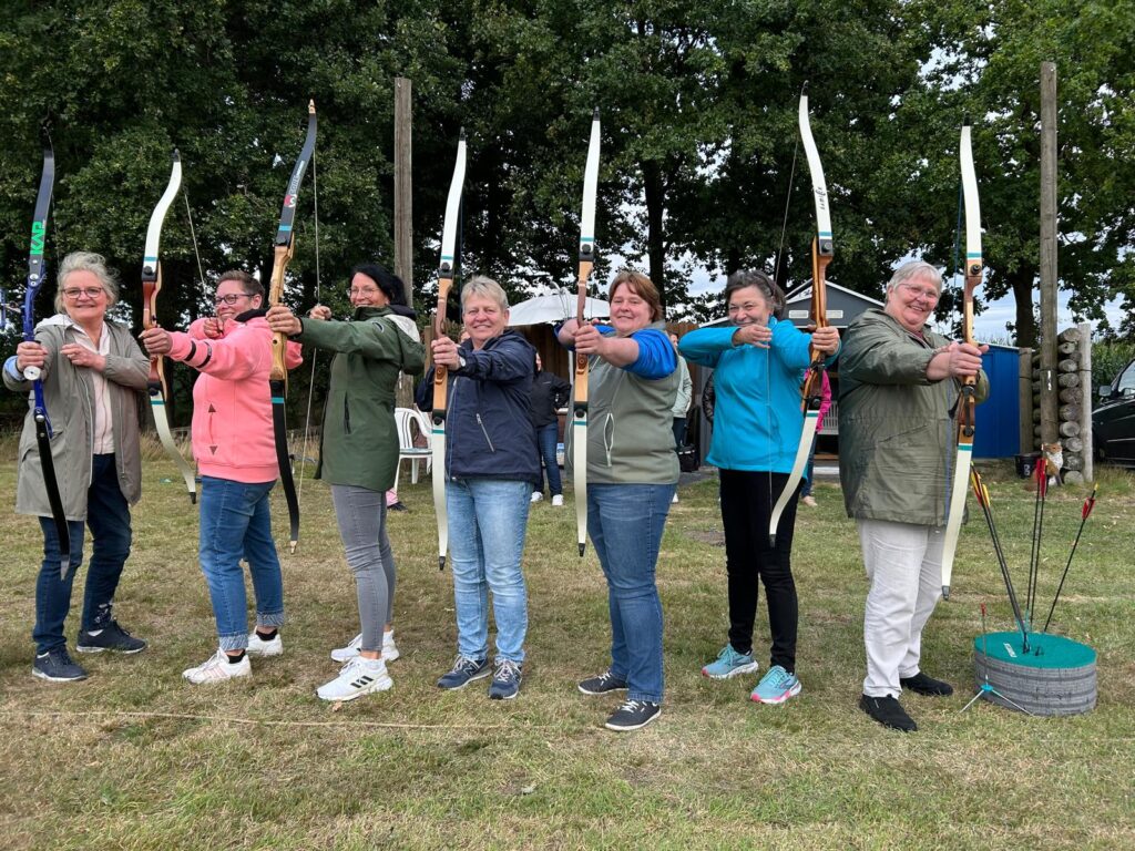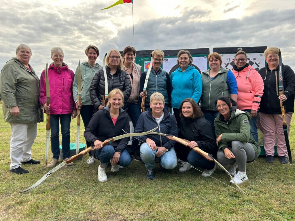 Sechzehn Ochtruper Landfrauen trafen sich auf unserem Vereinsgelände um Bogenschießen auszuprobieren. Nach kurzer Einweisung durch Norbert, Josef und Tim ging es auch schon los. Auf verschiedene Papier-Zielscheiben und einen dreidimensional, lebensecht nachgebildeten Fuchs wurde mit Pfeil und Bogen geschossen. Bei gutem Wetter wurde bis in den frühen Abend weiter um die besten Treffer gerungen. Alle Beteiligten waren sich einig, dass das Event bald wiederholt werden muss.